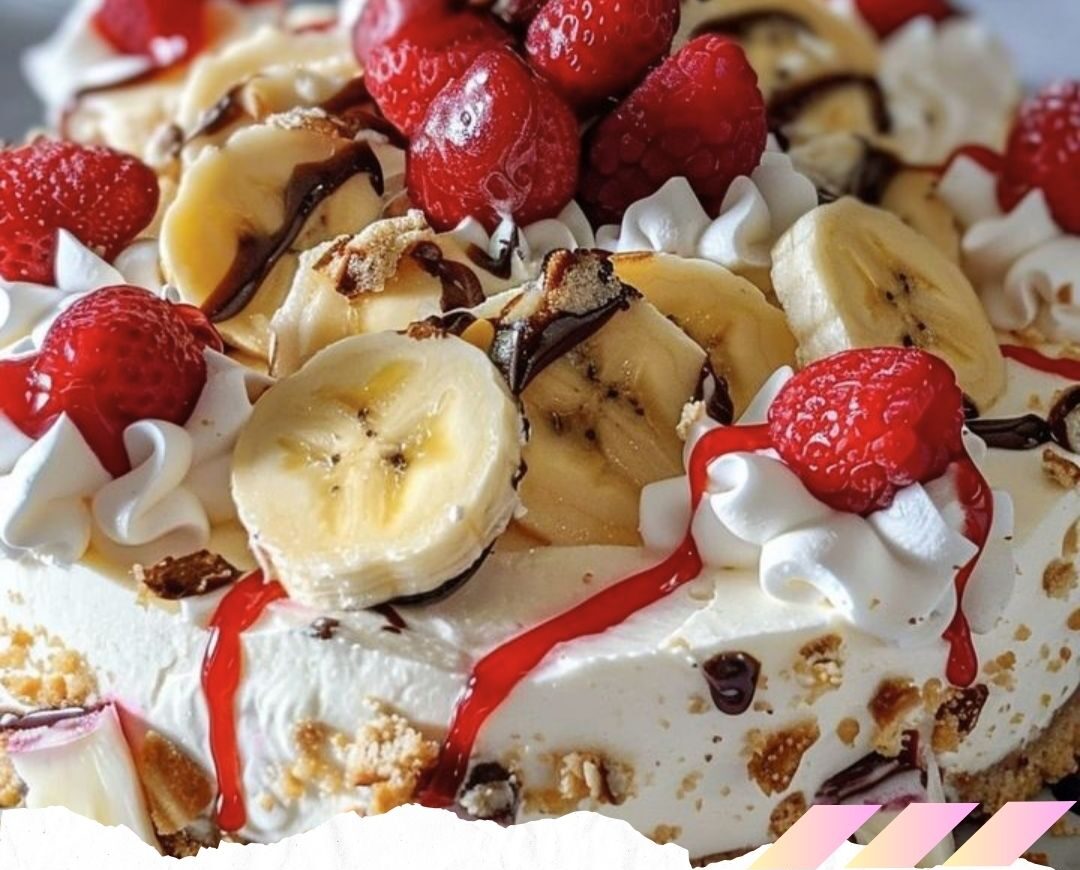 Before serving, top the cheesecake with crushed walnuts, maraschino cherries, and a drizzle of chocolate syrup.