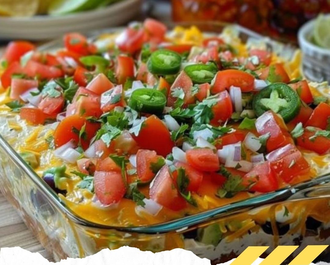 7. Layer 7 – Cheese: Finally, top the dip with shredded Cheddar cheese.