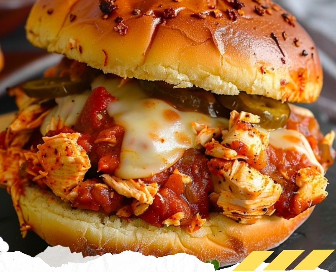 - Sprinkle that shredded cheese over the chicken mixture and then pop the top buns on.