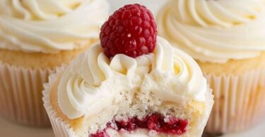 Almond Wedding Cake Cupcakes with Raspberry Filling