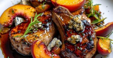 Balsamic Peach Pork Chops with Blue Cheese