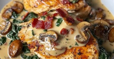 Smothered Chicken with Creamed Spinach, Bacon, and Mushrooms