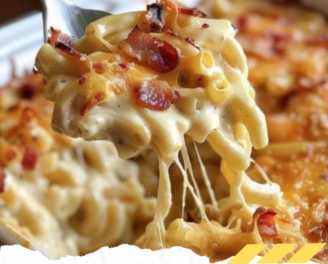 - In a large mixing bowl, combine the cooked pasta, shredded chicken, crumbled bacon, sauce from the skillet, and half of the shredded cheeses. Season with salt and pepper to taste.
