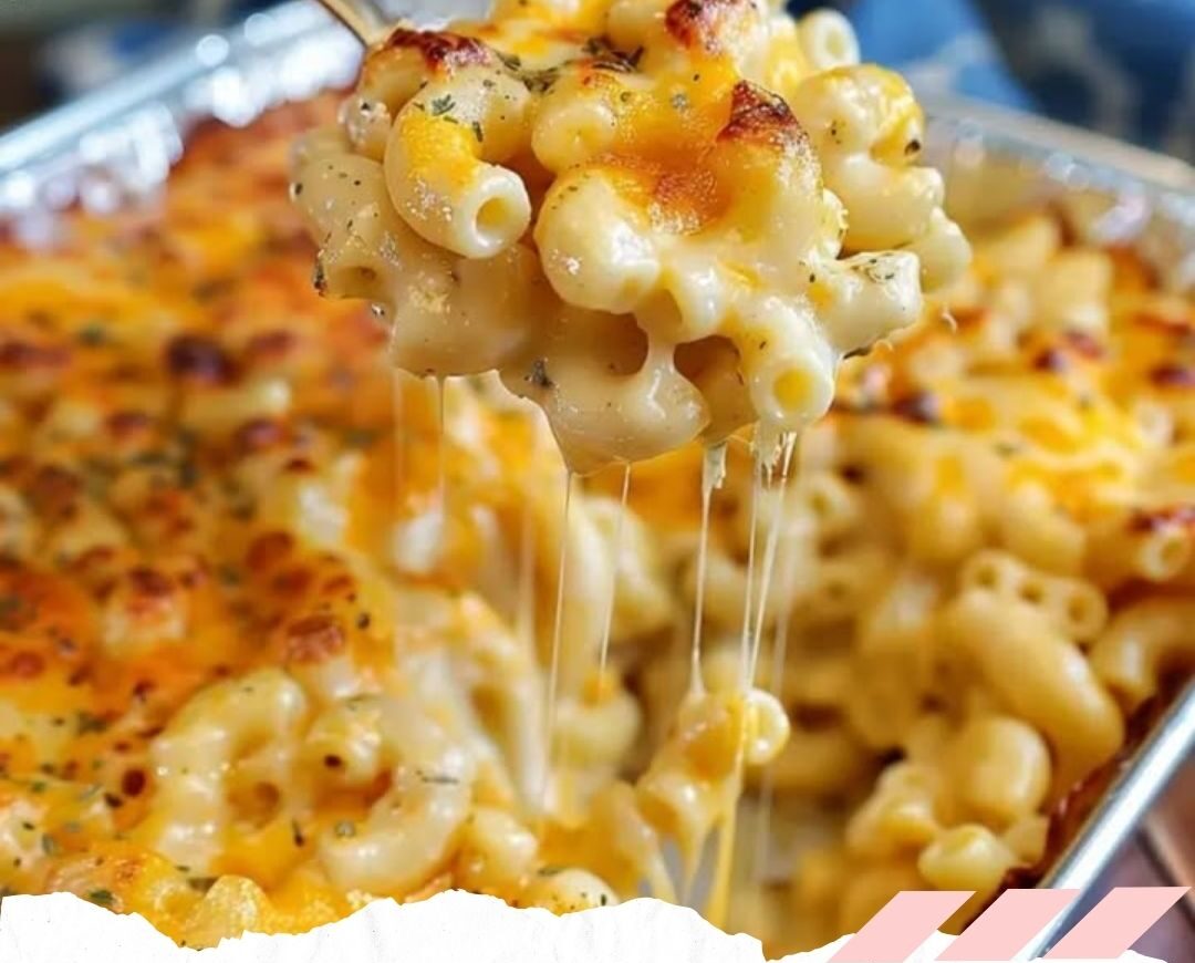 Remove the baked mac and cheese from the oven and let stand for 5 minutes before serving.