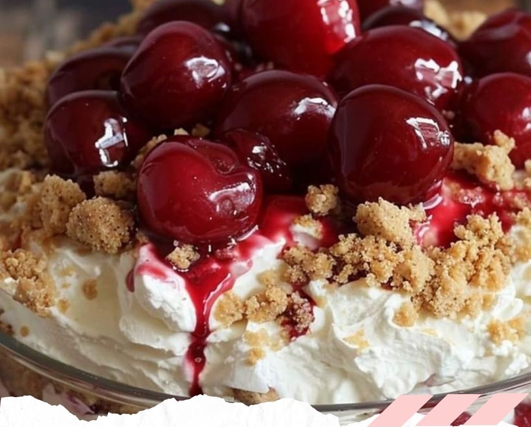 – Finish by sprinkling the remaining crumble mixture over the cherry layer.