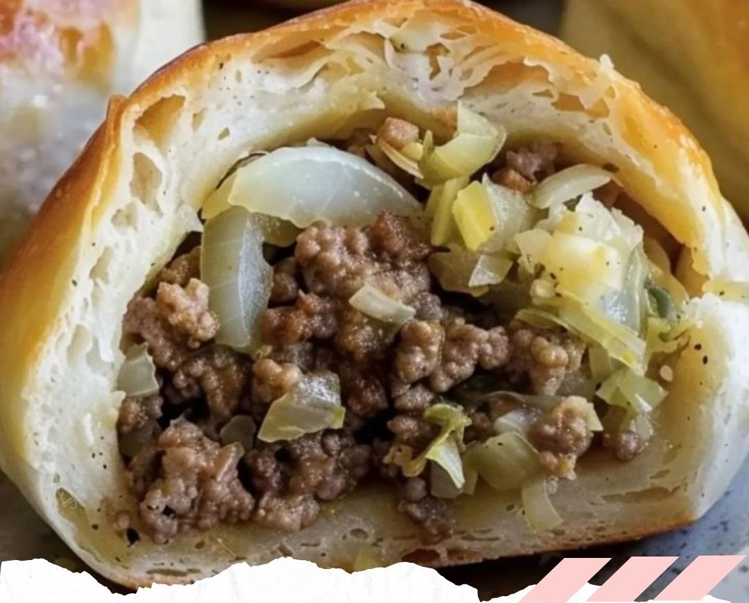 - Brown the ground beef in a large skillet over medium heat. When the beef is about halfway browned, add the butter, onion, and cabbage. Then cook until the beef is browned and the onions and cabbage are soft. Let it cool for a few minutes.