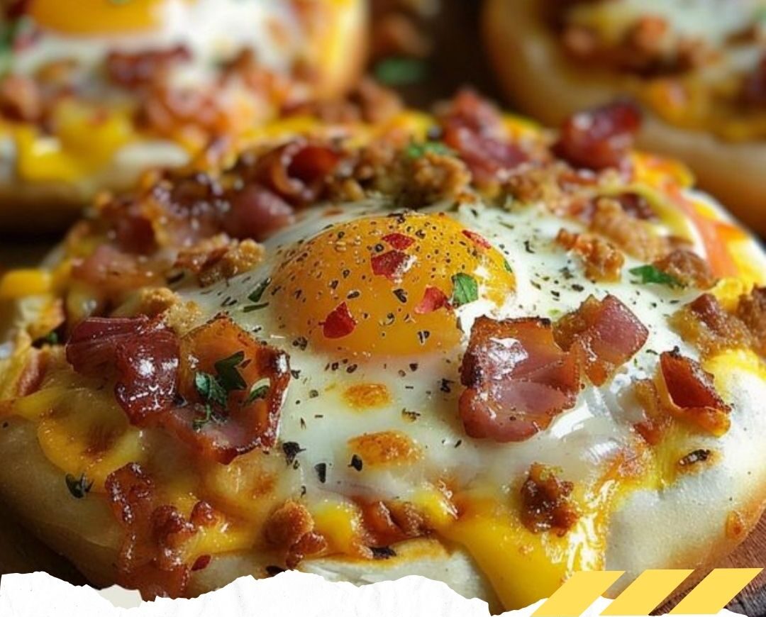 - Turn oven broiler on high and assemble pizzas on a baking sheet. Spread sawmill gravy on the open-faced toasted English muffins, then top with scrambled eggs, a slice of cheese, and sausage.