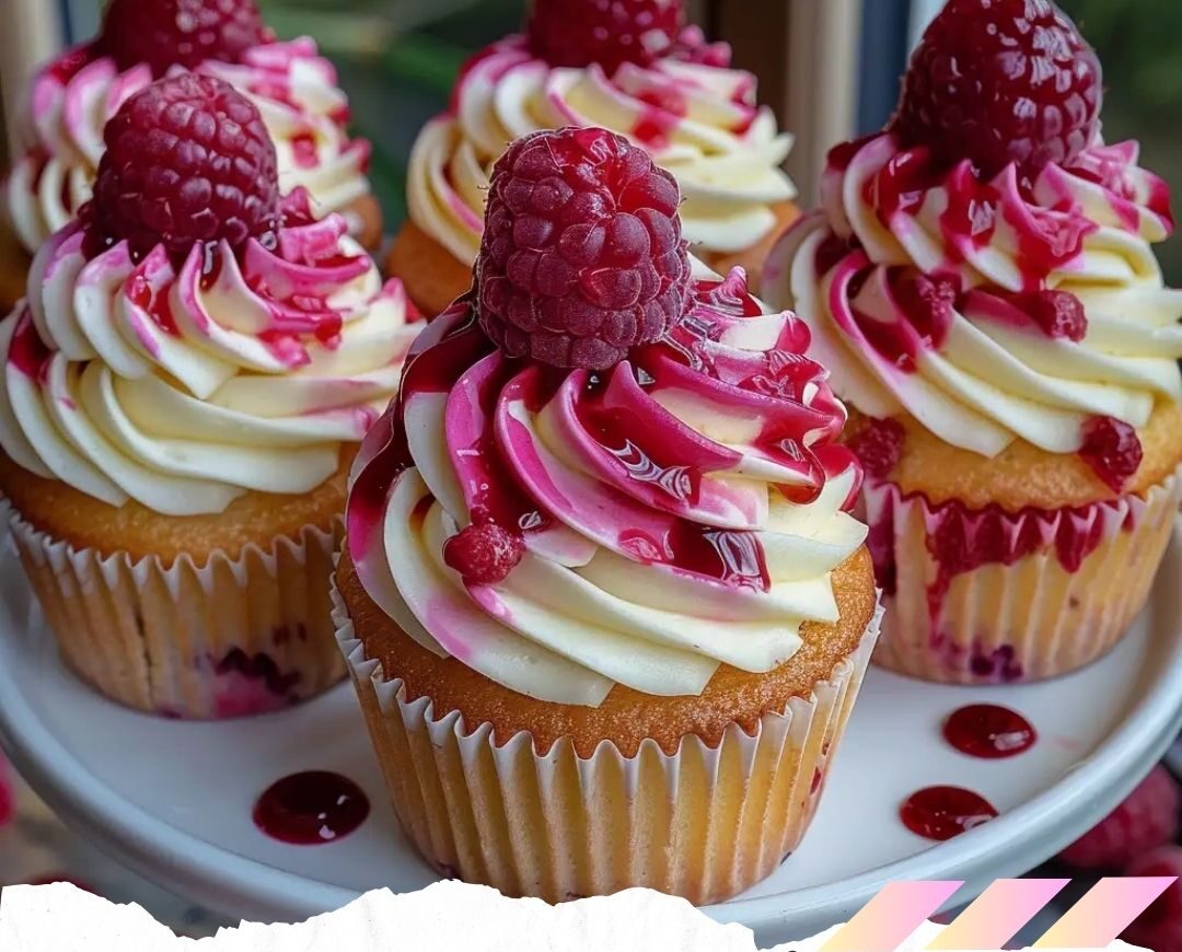 7️⃣ Once cupcakes are cool, top with raspberry compote and additional fresh raspberries.
