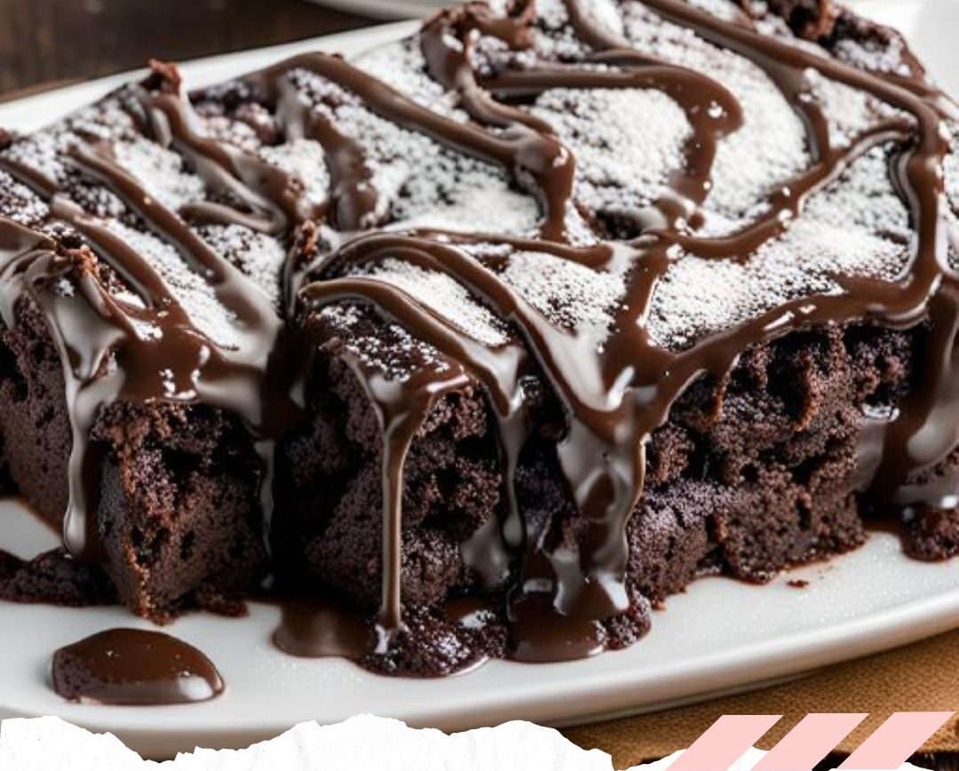 - Drizzle hot fudge sauce over the top of the cake.