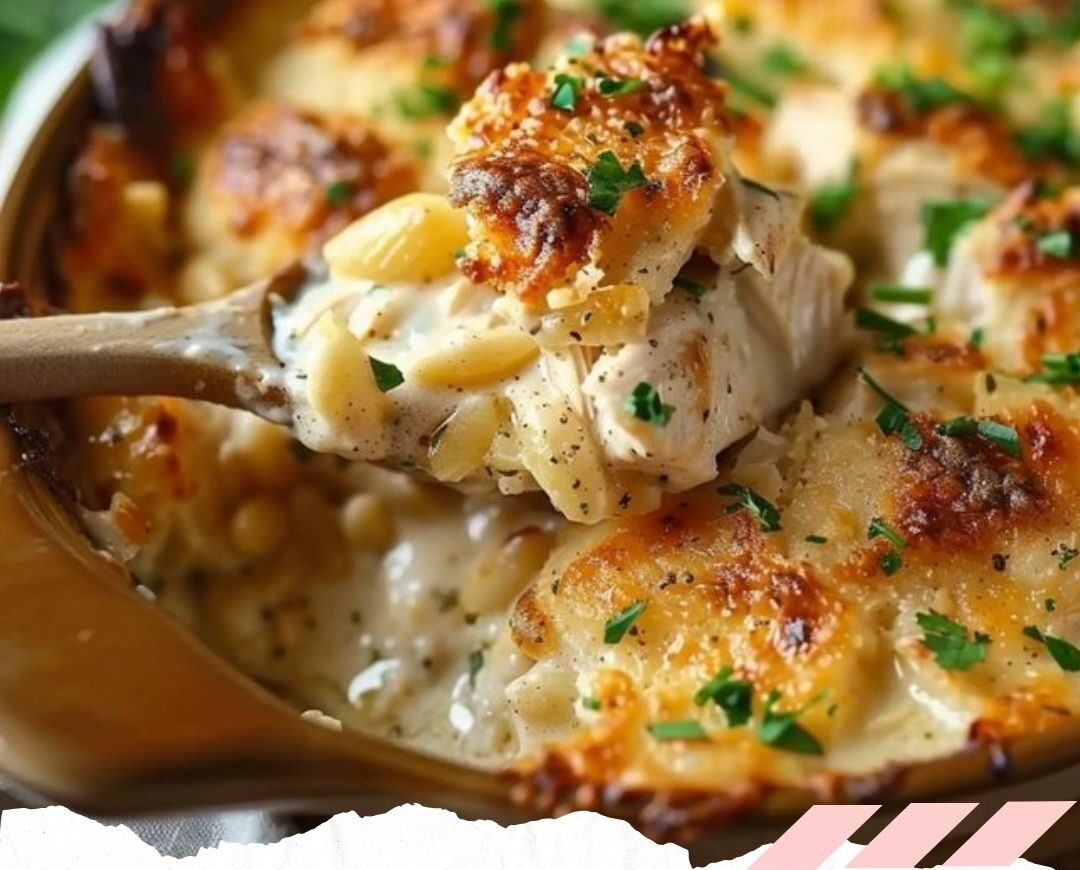 - Once baked, remove the casserole from the oven and let it sit for a few minutes to cool slightly. If desired, garnish with chopped parsley before serving.