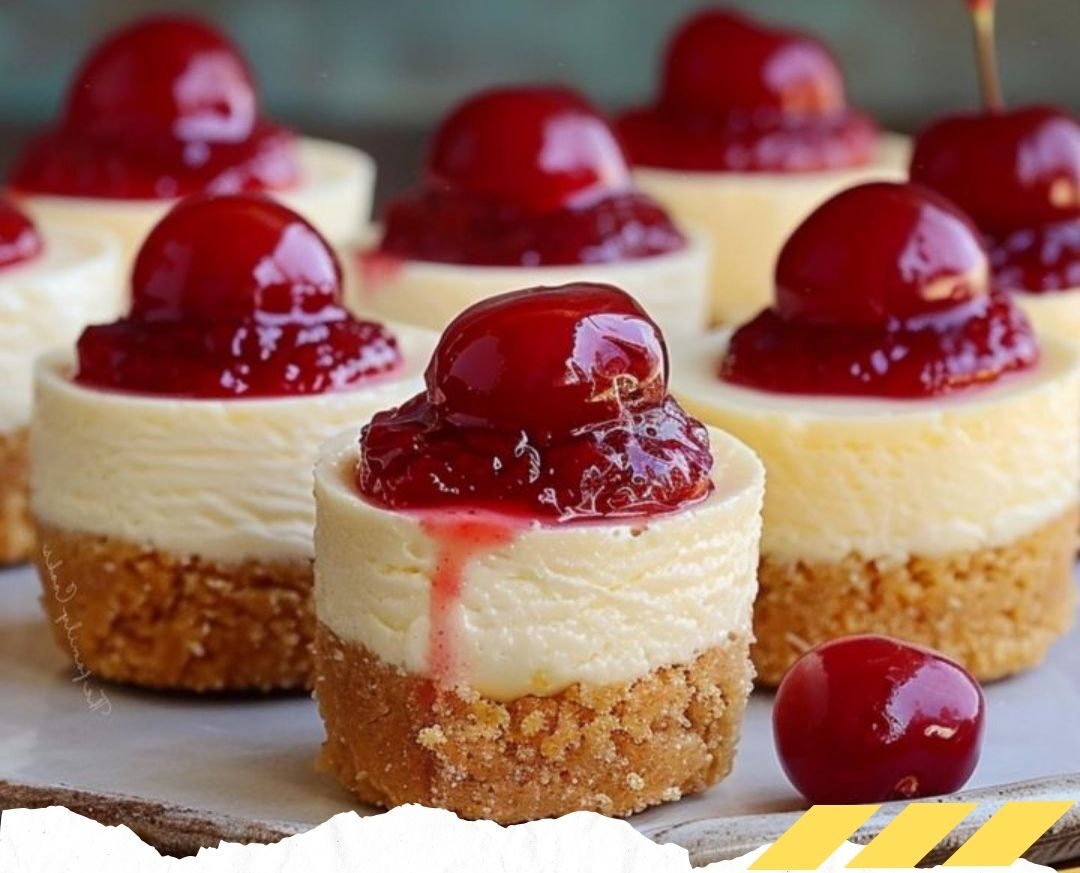 - Bake in the preheated oven for 15 minutes until the cheesecake is set. Cool. Top with a teaspoonful of cherry pie filling.