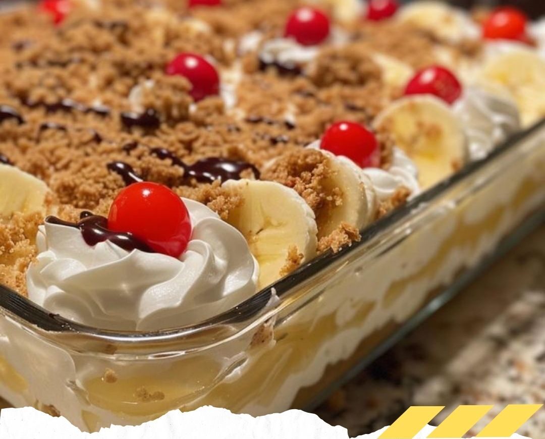 - Refrigerate the banana split cake for at least 4 hours, or overnight, to allow it to set.