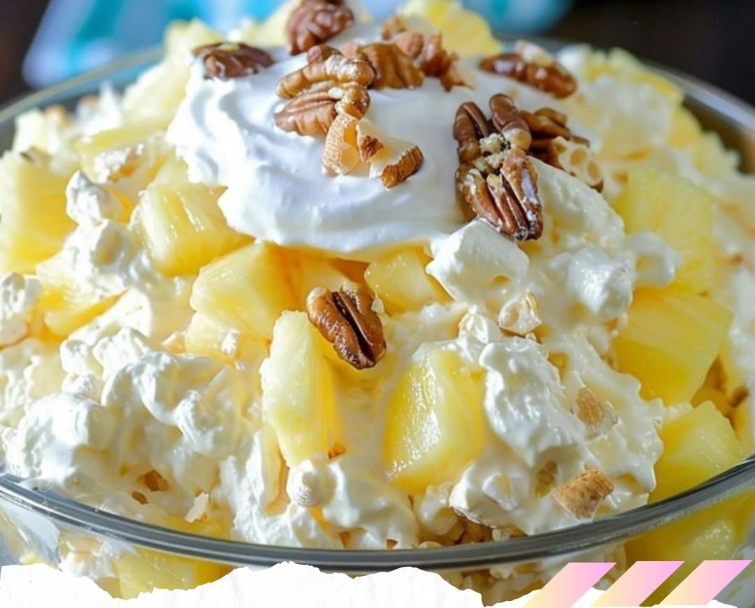 - In a large bowl, stir together the undrained pineapple and the vanilla pudding mix until well combined.