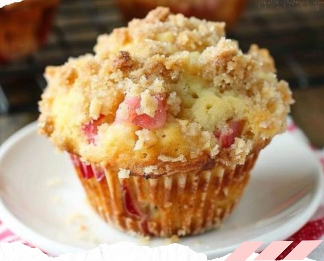 Pour the wet ingredients into the dry ingredients and gently stir together. Do not overmix, there should still be streaks of flour. Gently stir in the rhubarb.
