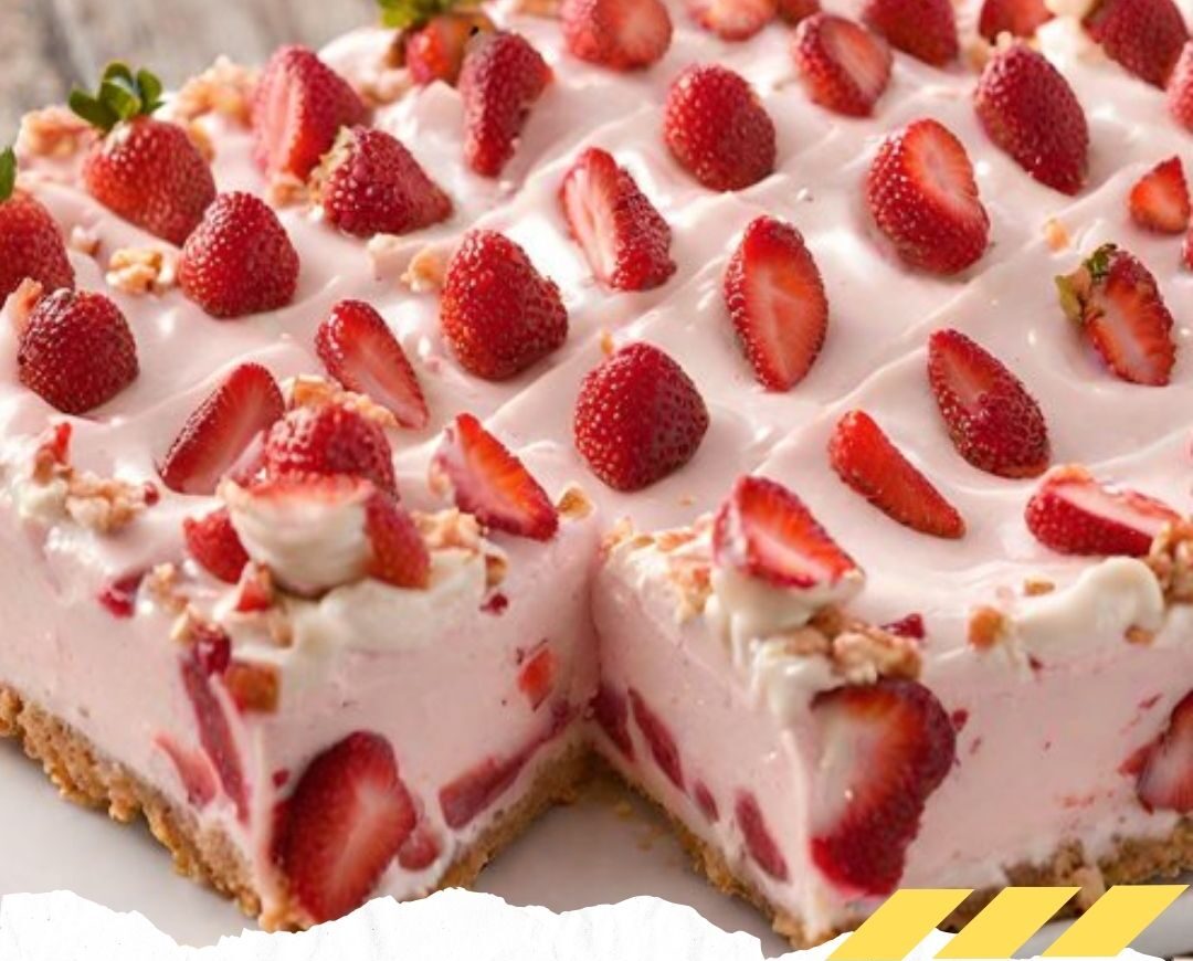 - Place the second layer of strawberry cake on top of the cheesecake.