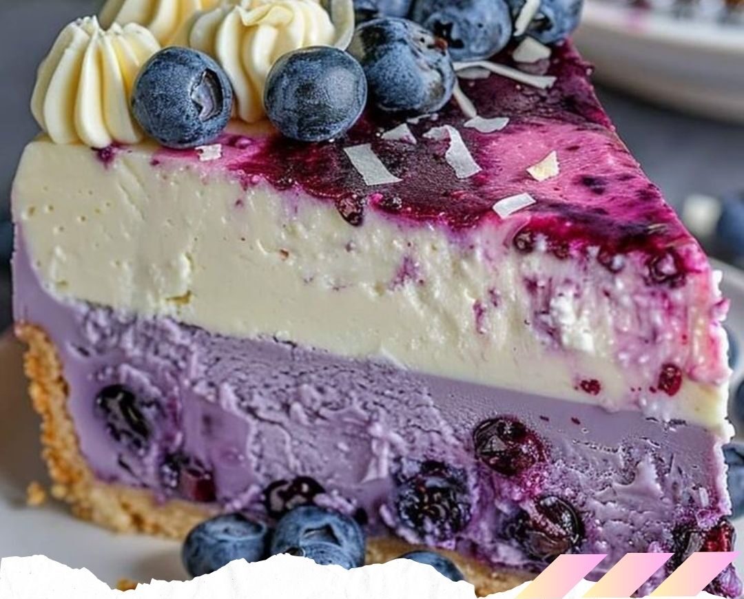 5. Garnish and Serve: Before serving, spread blueberry jam over the cheesecake. Garnish with whipped cream, fresh blueberries, and mint leaves.